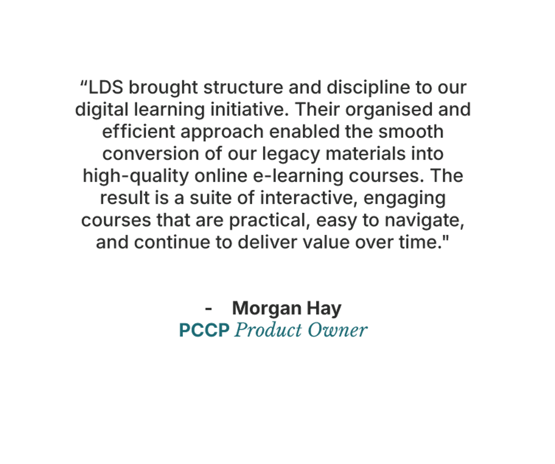 As your eLearning content provider, we collaborate closely with your organisation to design content that is made entirely for you — shaped around your learners and built to drive specific business results.
